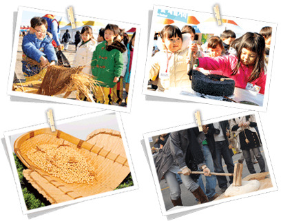 꼬마메주 만들기, 콩타작체험, 고추장 담그기, 김치 담그기 등 유·무료 체험프로그램으로 축제분위기를