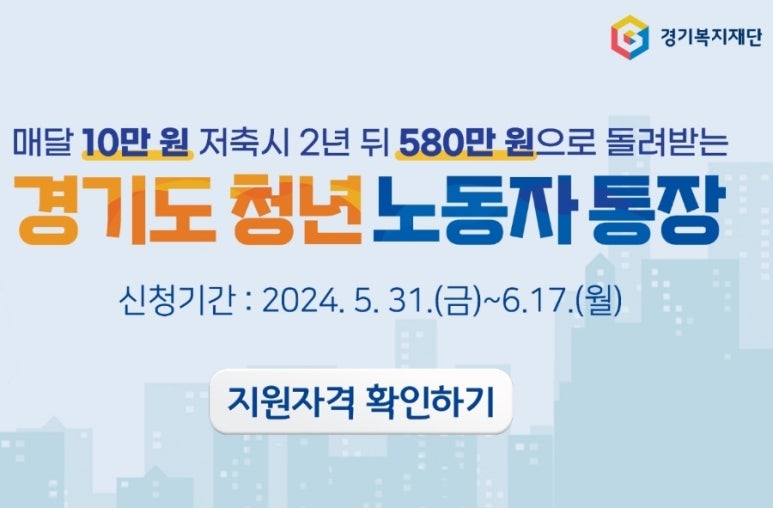 경기도에서는 매달 10만 원씩을 저축해 2년간 580만 원의 목돈을 만들 수 있는 통장을 개설하여 준다